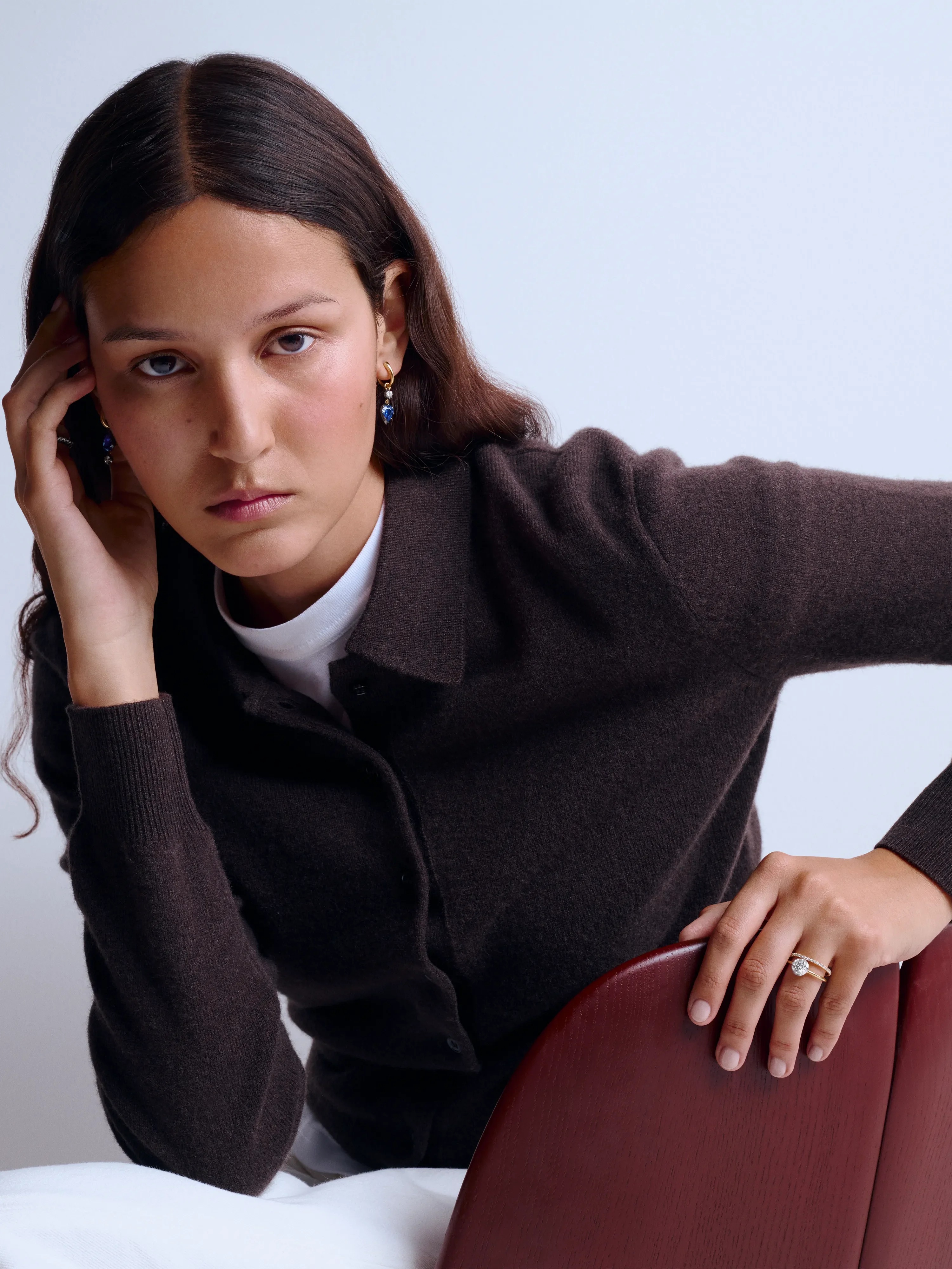 A Diamond & White Gold Button Back Ring with a 1ct Round Brilliant cut diamond, set in a Georgian style cut-down setting in 18K white gold & yellow gold.