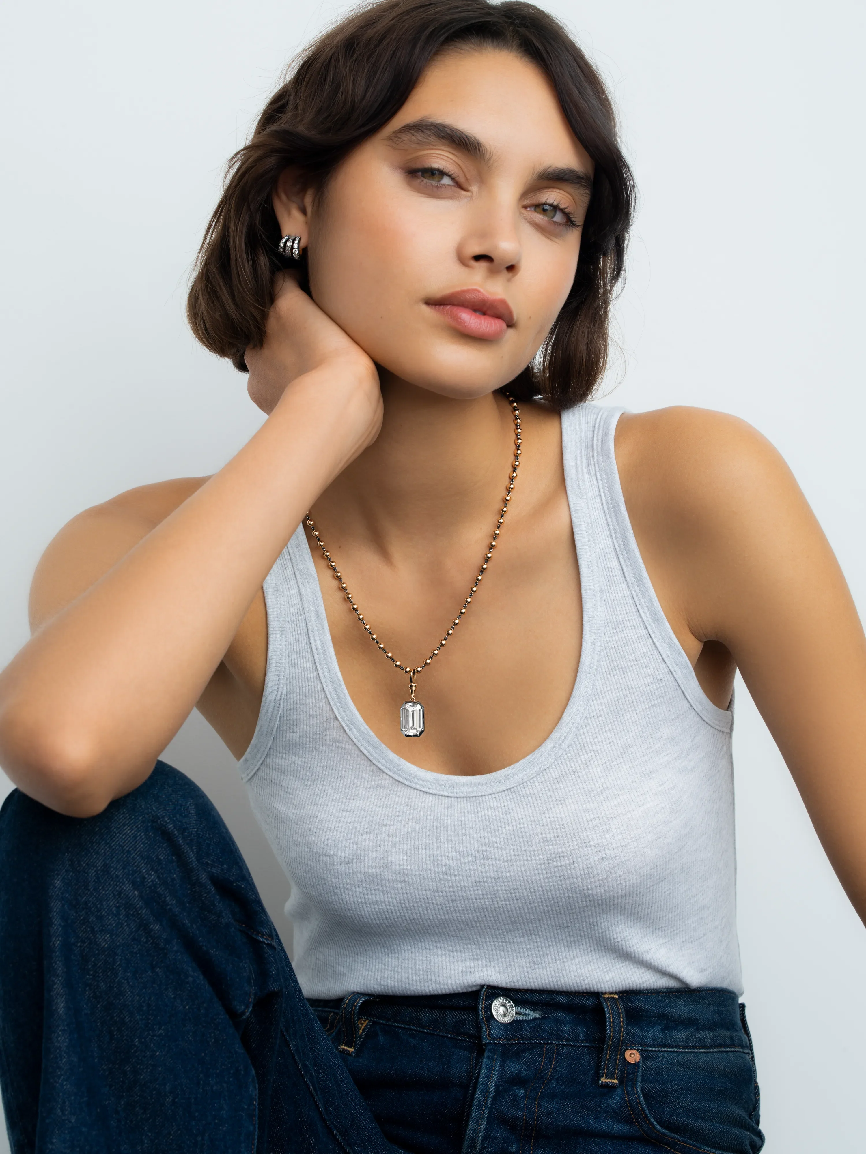Ball n Chain 11.83ct Emerald Cut Diamond Pendant