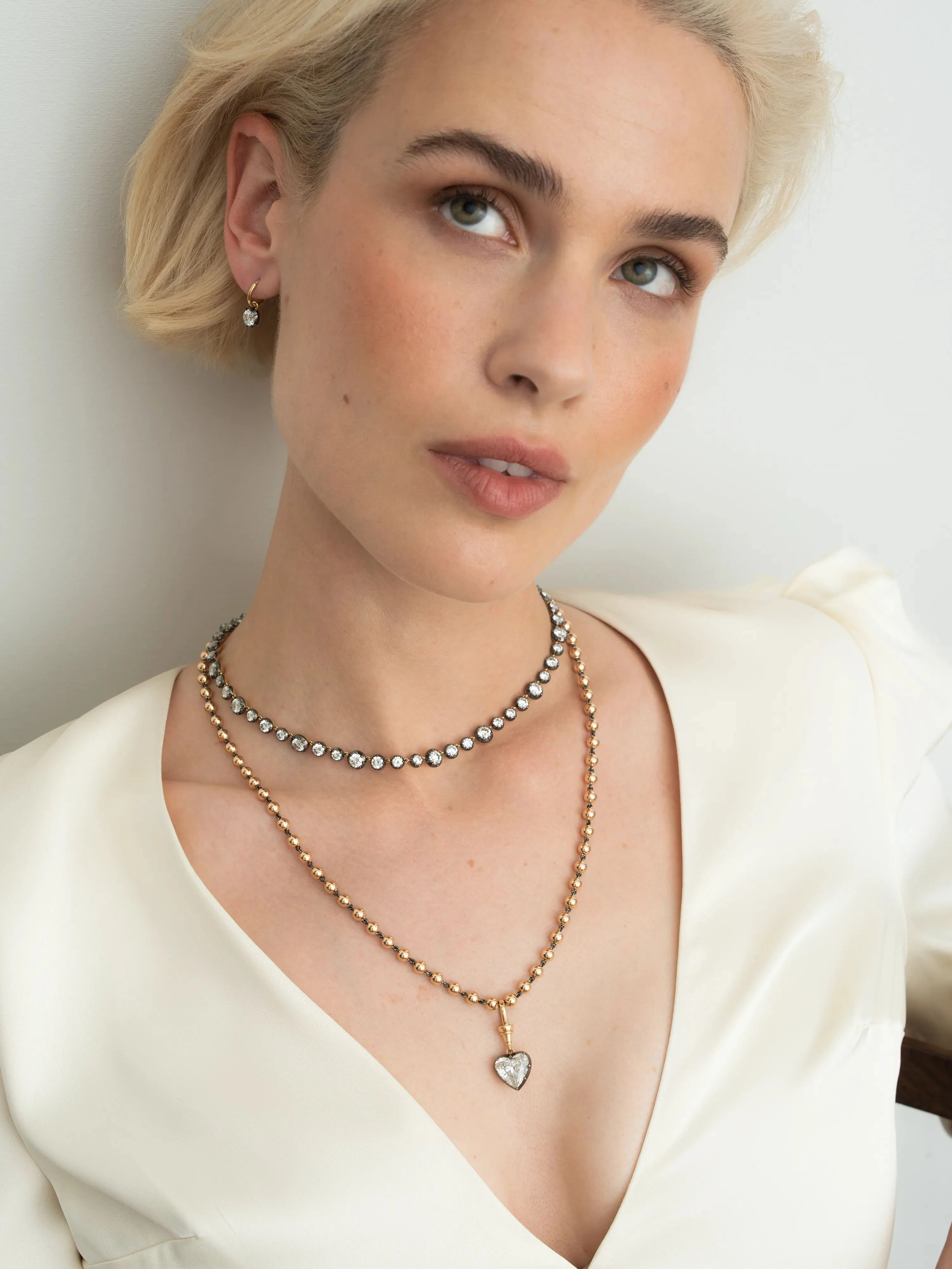 A Ball n Chain Heart-Shaped Diamond Pendant with a 5.10ct heart-shaped diamond, set in a Georgian style cut-down setting in 18K blackened white gold & rose gold.