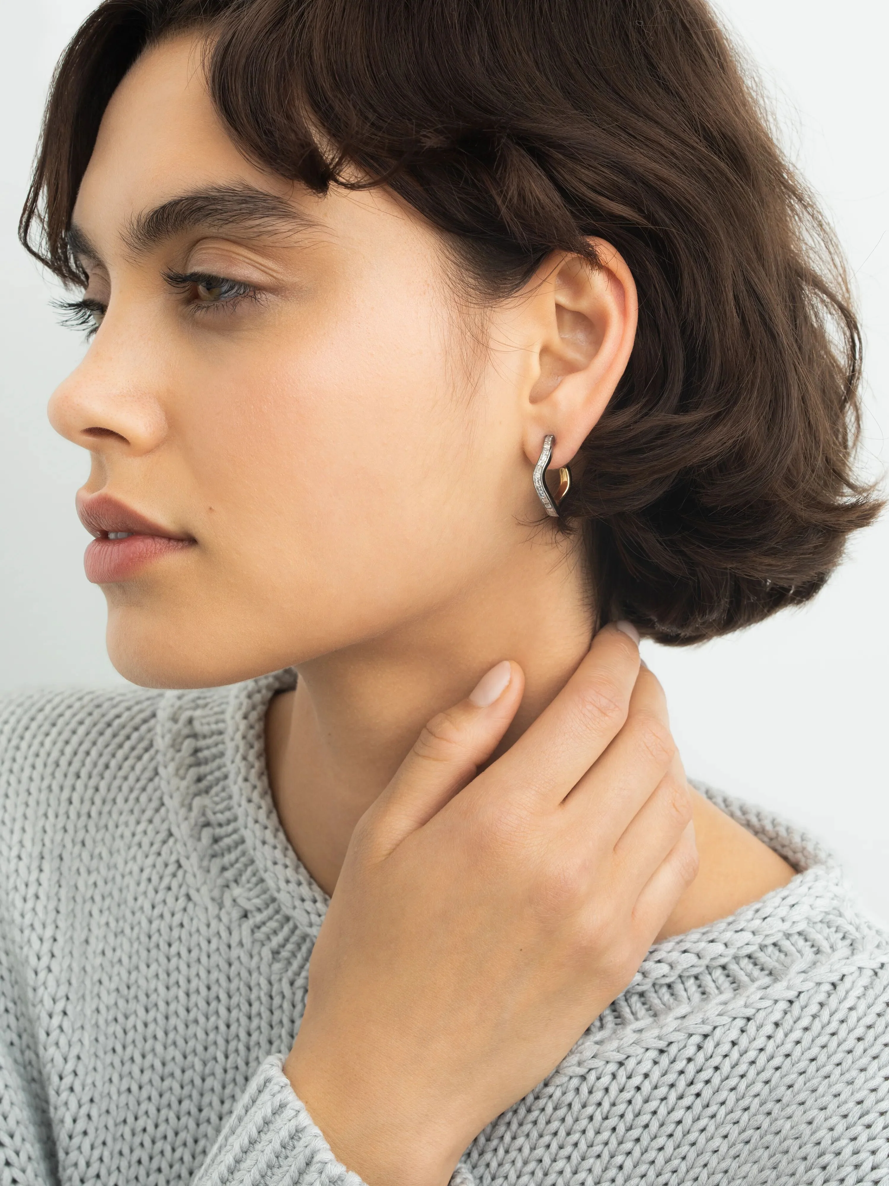 Carmela Carré-Cut Diamond & Blackened Gold Spaghetti Hoop Earrings